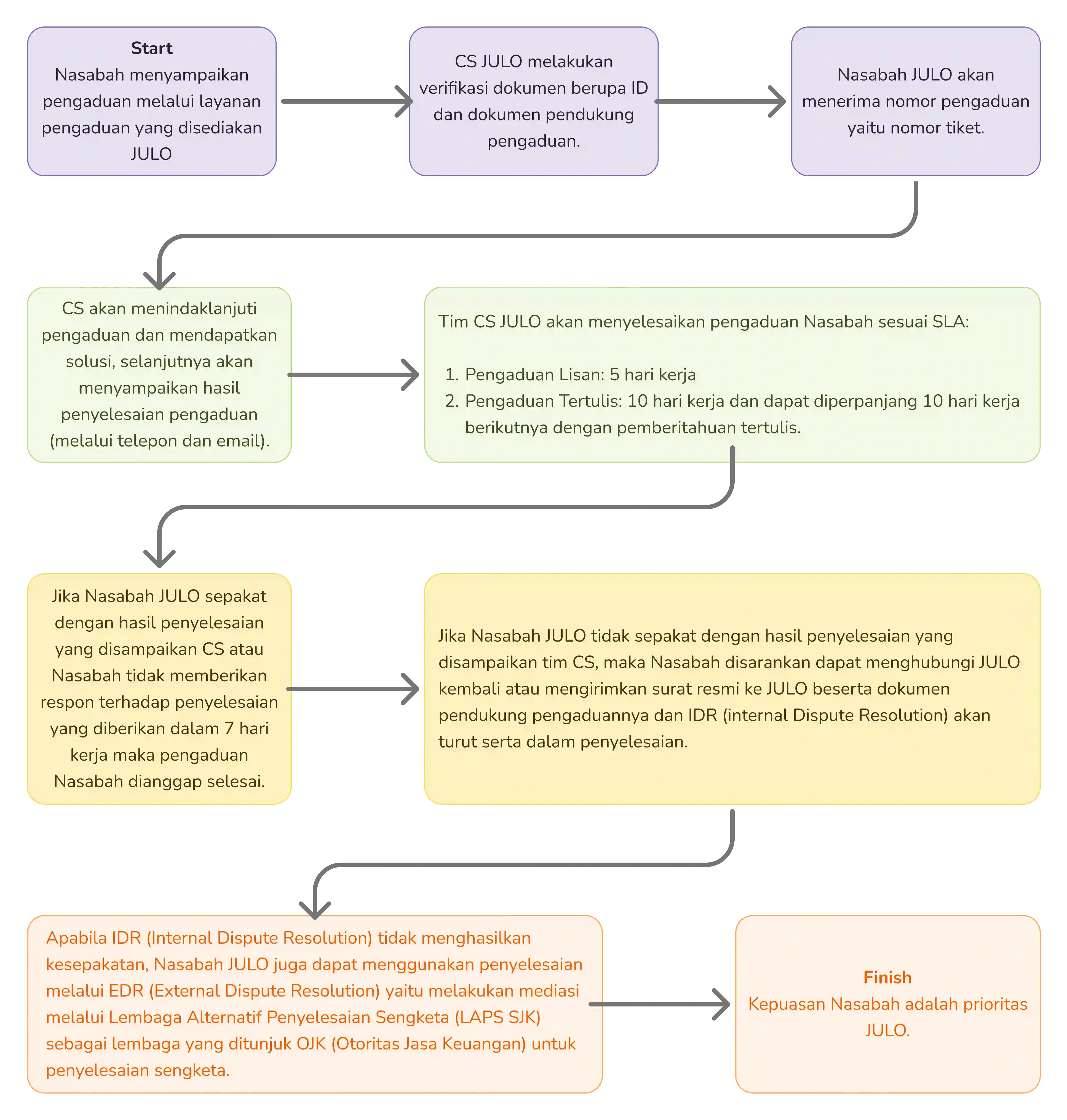 Nasabah JULO diberikan kemudahan mengakses layanan pengaduan dengan berbagai pilihan media baik secara lisan melalui :
